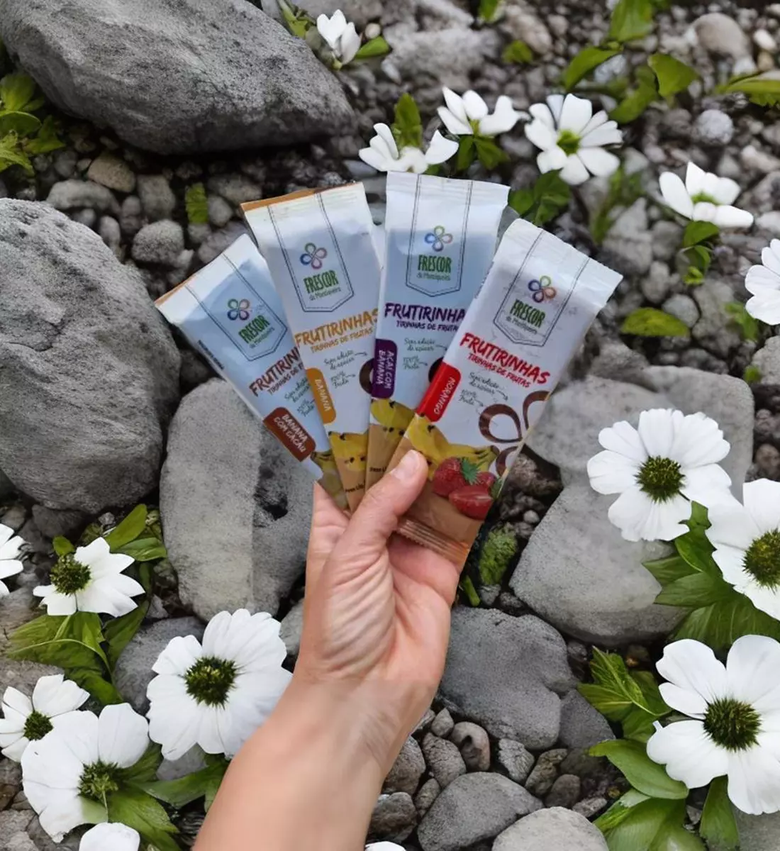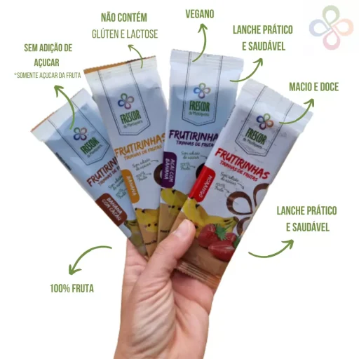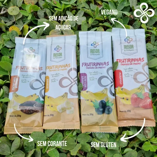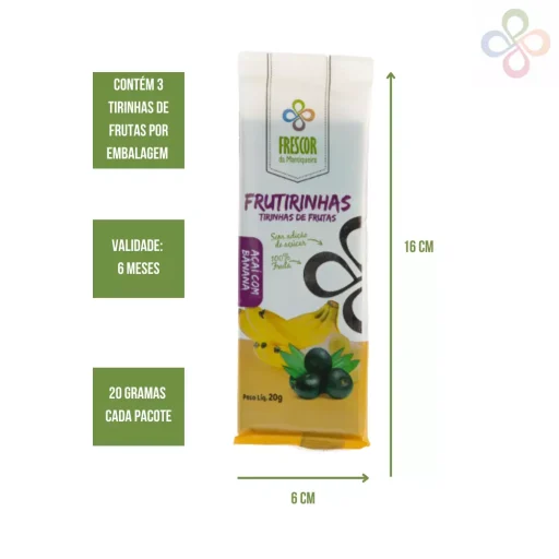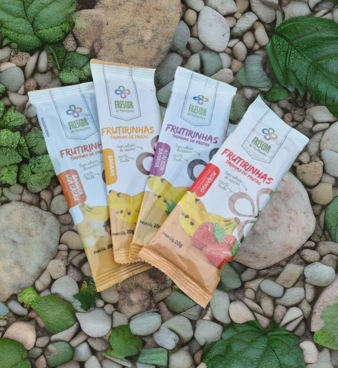 As Frutirinhas, tirinhas de frutas desidratadas, é um doce delicioso e nutritivo. É 100% natural, feito somente com frutas desidratadas à baixa temperatura, mantendo todos os nutrientes dos alimentos.
